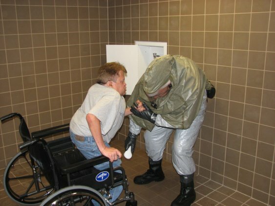 Special Needs "Victim" being decontaminated during a Region 10 Exercise at Pikeville Medical Center